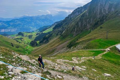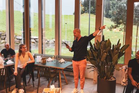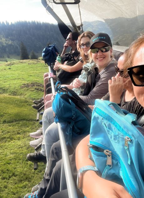 „Dauerhaft in Erinnerung bleibt mir sicher der feucht-fröhliche Abend in der Bar, die wunderbare Aussicht, das Stoos-Bähnli (hat mich wirklich technisch beeindruckt), und generell die schöne Zeit mit allen Kolleg:innen. Ich hatte mega Spass am Pantomime-Spiel und viele tolle Gespräche mit Kolleg:innen. Die Wanderung hat mich, ganz im Sinne von growth mindset, dazu veranlasst, wieder an meiner Kondition zu arbeiten; der Fitness-Slot ist gebucht.“