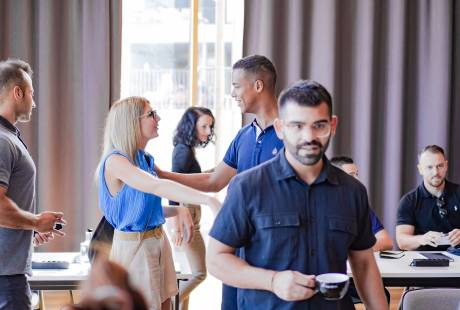 Am ersten Tag sind wir direkt in geschäftliche Themen eingestiegen, die immer bei unserem monatlichen Team Meeting besprochen werden. Im geräumigen Panorama-Saal sitzend, war es bemerkenswert zu sehen, wie groß die Coopers Family geworden ist – vor allem für Christian und Denise, die Coopers vor 13 Jahren gegründet haben, ein beeindruckender Anblick.