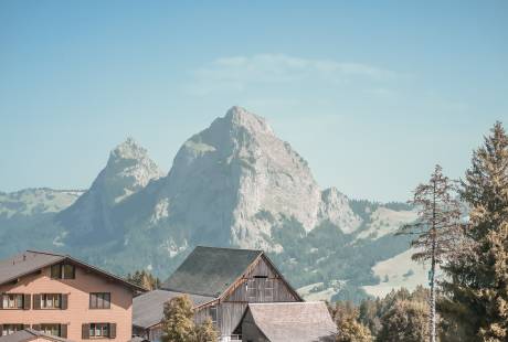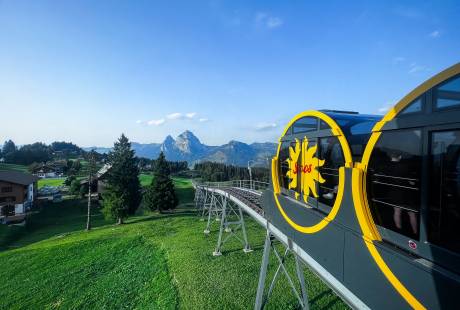 In Schwyz angekommen, erwartete uns ein einmaliges Erlebnis: eine Fahrt mit der steilsten Standseilbahn der Welt, die uns auf 1'300 Meter über dem Meeresspiegel, auf den Stoos, brachte. Wir bezogen die Stoos Lodge*, ein unkompliziertes und doch modernes Hotel inmitten der atemberaubenden Schwyzer Bergwelt.