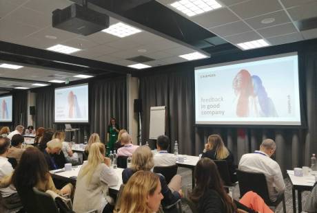 Die beiden Tage waren gut strukturiert und umfassten zwei separate Vortragsreihen: Die eine richtete sich an Recruiter, die viel mit Bewerbermanagement zu tun haben, während die zweite Reihe strategische und Managementthemen abdeckte. Einige Präsentationen fanden vor versammelter Runde statt, wie etwa der Vortrag unserer HR-Managerin Monica, die über die Feedback-Kultur hier bei Coopers referierte.