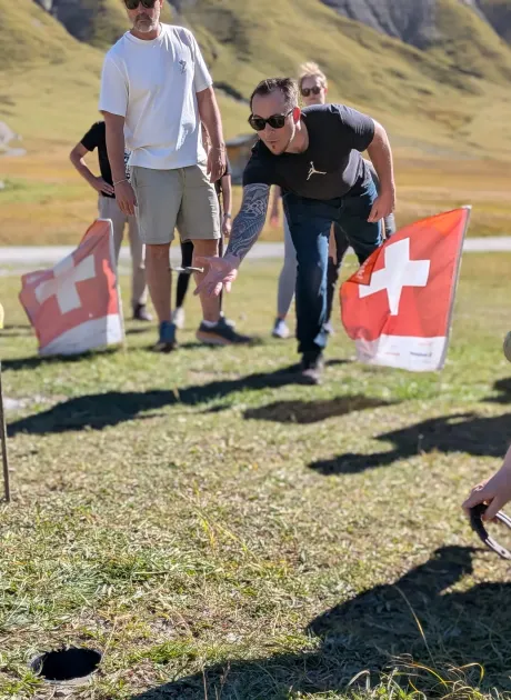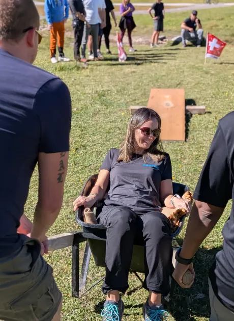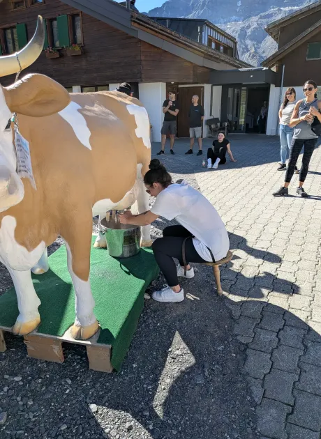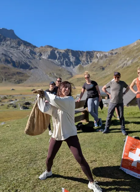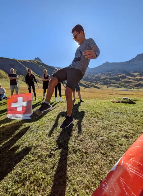 Wie stark diese Verbindungen sind, zeigte sich auch am Freitagvormittag: Noch etwas müde von einem ausgelassenen Abend (mit legendären Karaoke-Performances), stürzten wir uns voller Wetteifer und Teamgeist in die Schweizer Älplerspiele*. Beim Chuämälchä, Naglä, Gloggi lütä, Heupüntel wärfä oder beim Hufisä schiessä war alles gefragt: Geschick, Teamwork und manchmal auch eine Portion Glück. Am Ende war es ein Kopf-an-Kopf-Rennen. Gewonnen hat schliesslich Team 1 – herzliche Gratulation!