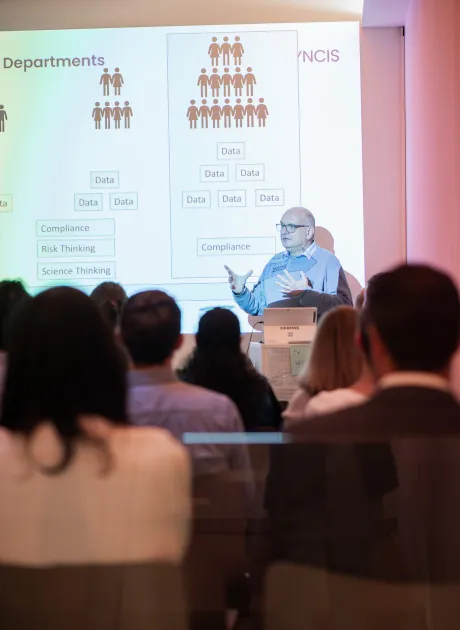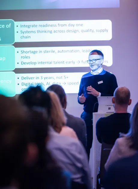 Christian brachte eine praxisnahe Perspektive aus Projektabwicklung und Betrieb ein und zeigte, wie sich die Life-Sciences-Industrie entwickelt – mit immer enger zusammenwachsenden Investitionsprojekten und Betriebsprozessen, einer hohen Nachfrage nach Führungstalenten und Agilität als entscheidendem Erfolgsfaktor.