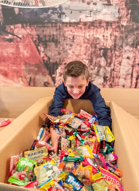 Danach wurde es praktisch und süss. Beim Abfüllen von Süssigkeiten und Verpacken von Geschenkboxen waren alle mit vollem Einsatz dabei. Schnell herrschte Einigkeit: „Irina hat den besten Job im ganzen Haus, sie darf immer Süssis einkaufen!“