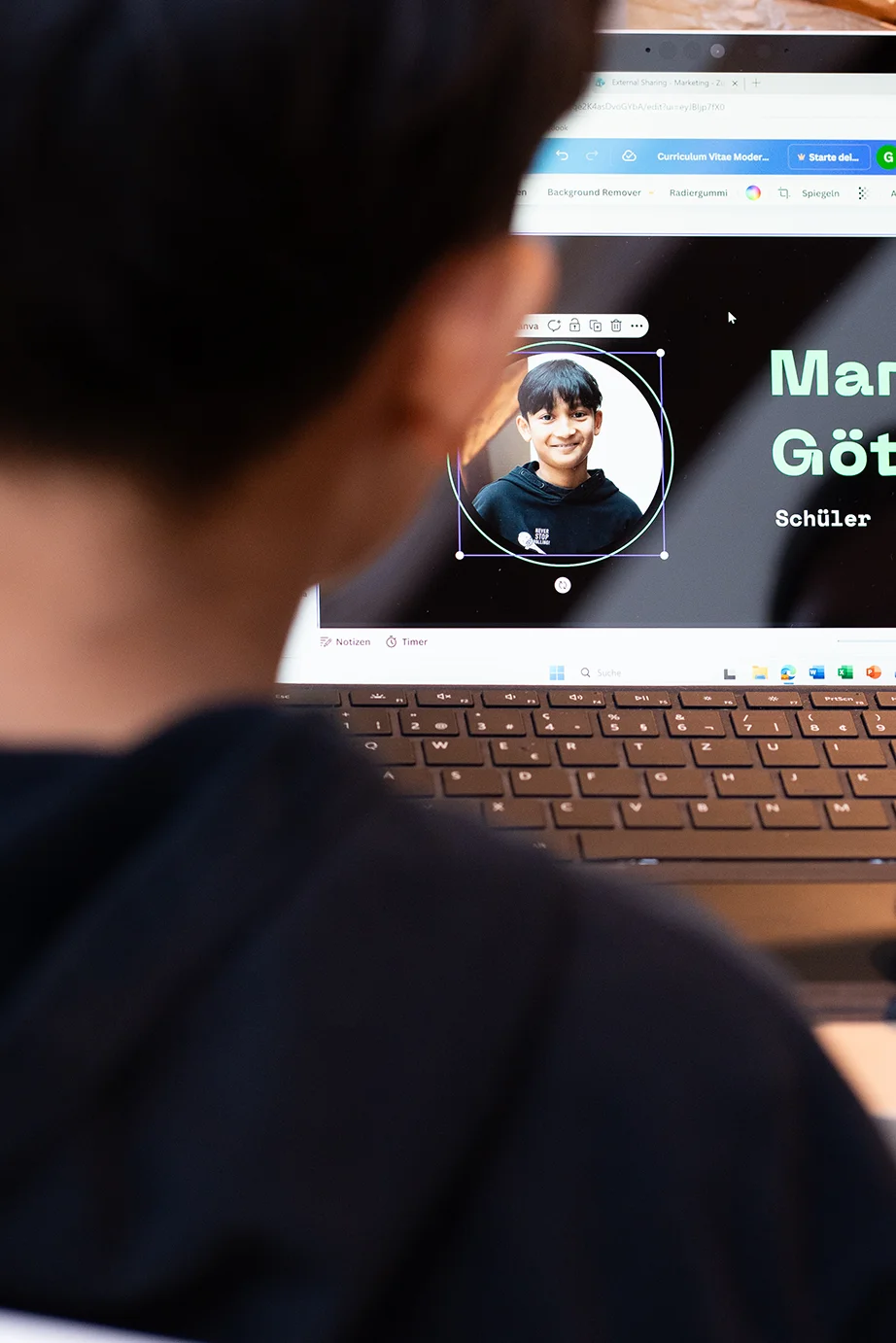 Zuerst stand etwas an, das sonst eher Erwachsene beschäftigt: den eigenen Lebenslauf gestalten. Mit Unterstützung aus dem Coopers-Team durften alle eine Vorlage auswählen, ihre Daten einfügen – und bei einem professionellen Porträtshooting mit Jasmin gleich das passende Bewerbungsfoto aufnehmen.