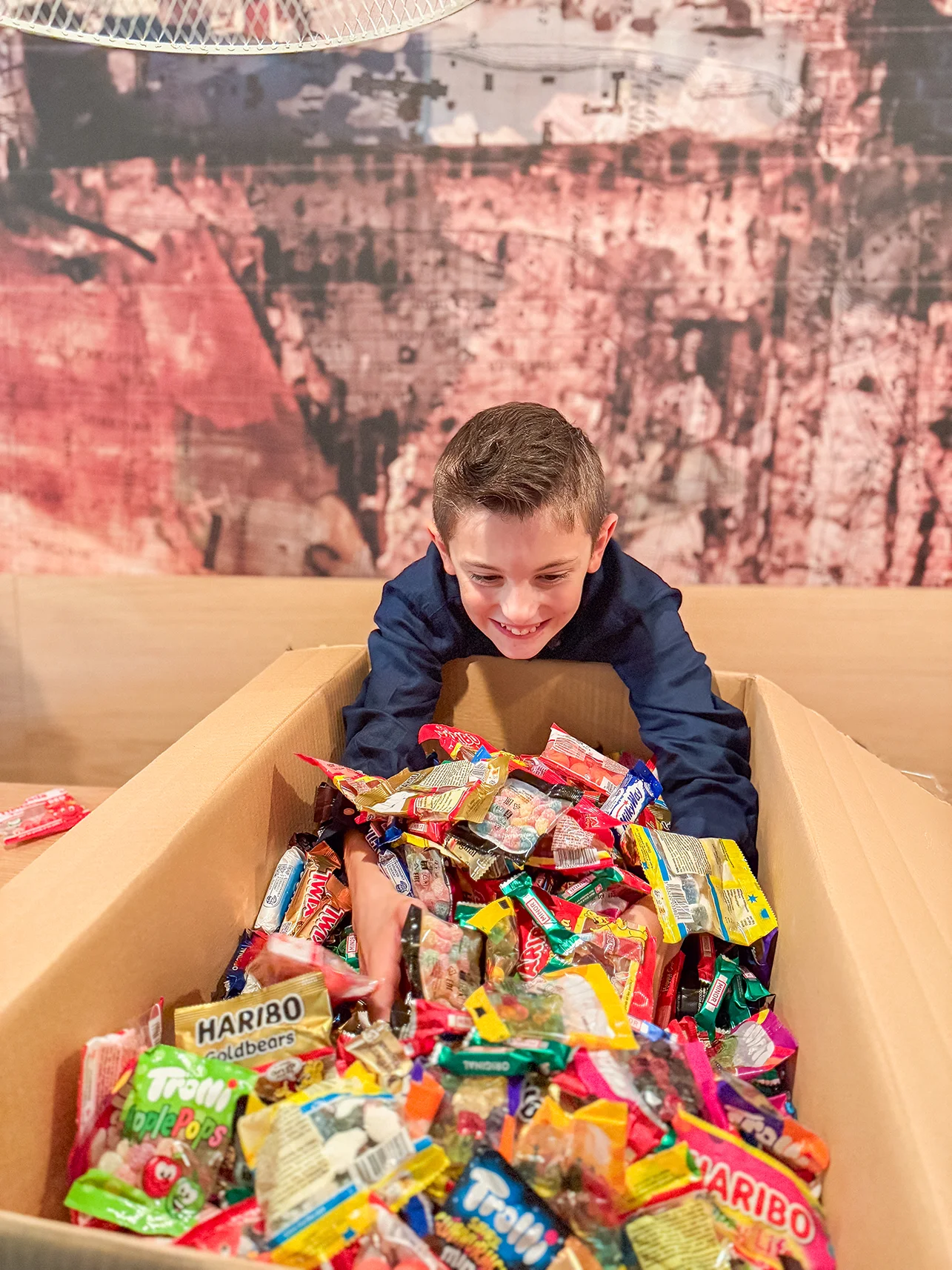 Danach wurde es praktisch und süss. Beim Abfüllen von Süssigkeiten und Verpacken von Geschenkboxen waren alle mit vollem Einsatz dabei. Schnell herrschte Einigkeit: „Irina hat den besten Job im ganzen Haus, sie darf immer Süssis einkaufen!“