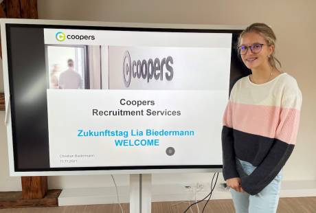 So, at Coopers we were more than happy to open our doors to potential young employees on Future Day. Lia, the daughter of our Managing Director, Christian Biedermann, was allowed to peek over his shoulder at work. This is how Christian experienced it: "National Future Day is a wonderful and enriching initiative. Lia accompanied me all day yesterday and looked over my shoulder at all my activities. We talked about new sourcing opportunities, trends, our Coopers culture, ongoing projects and even visited a client together. It was a fantastic day and Lia was able to gain insight into a new field of work."